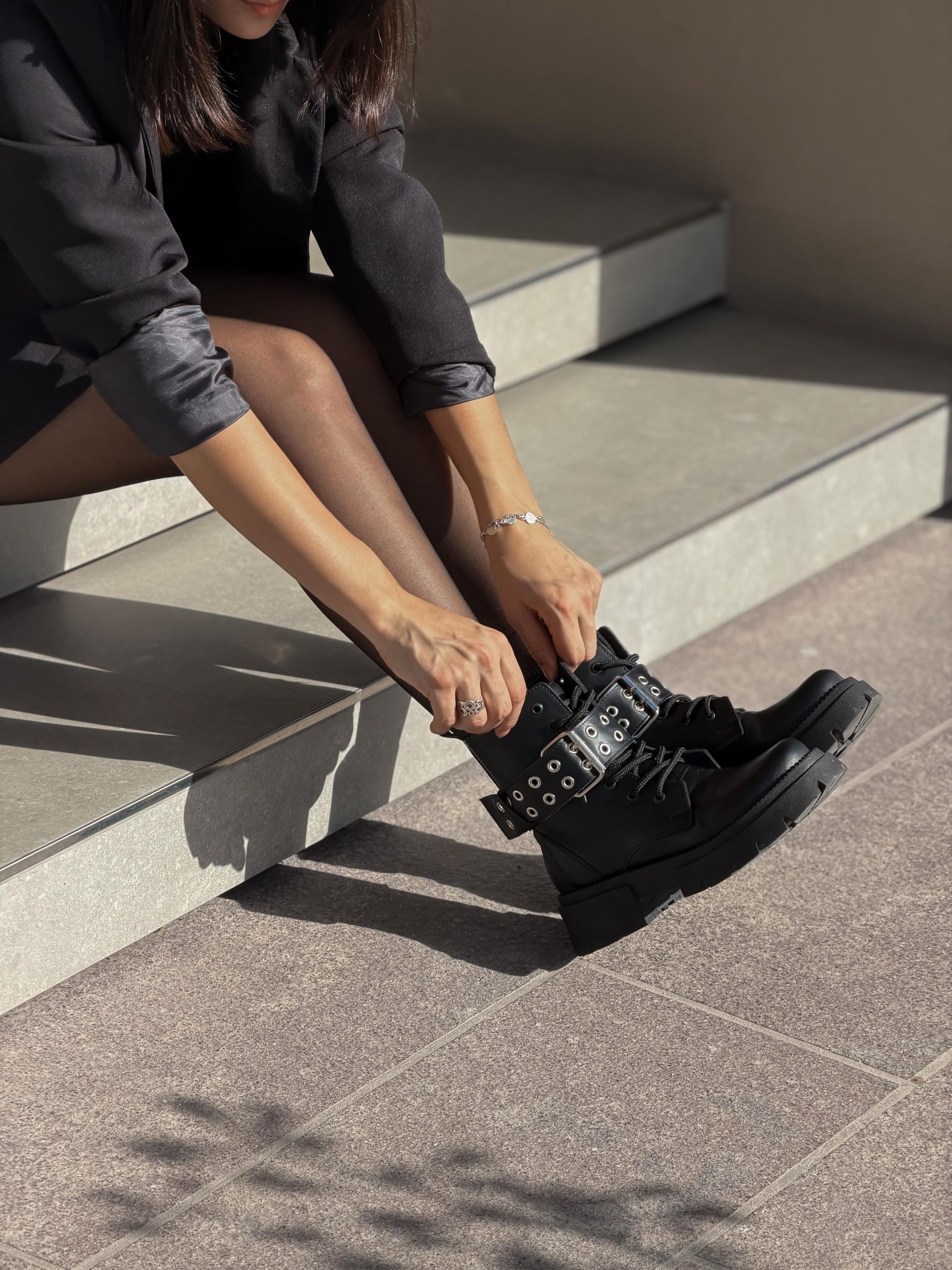 Nuestros borcegos bruna,su base chunky aporta presencia y comodidad real para el día a día, mientras que el cinto desmontable te permite transformarla según tu estilo: más clásica o más rocker.