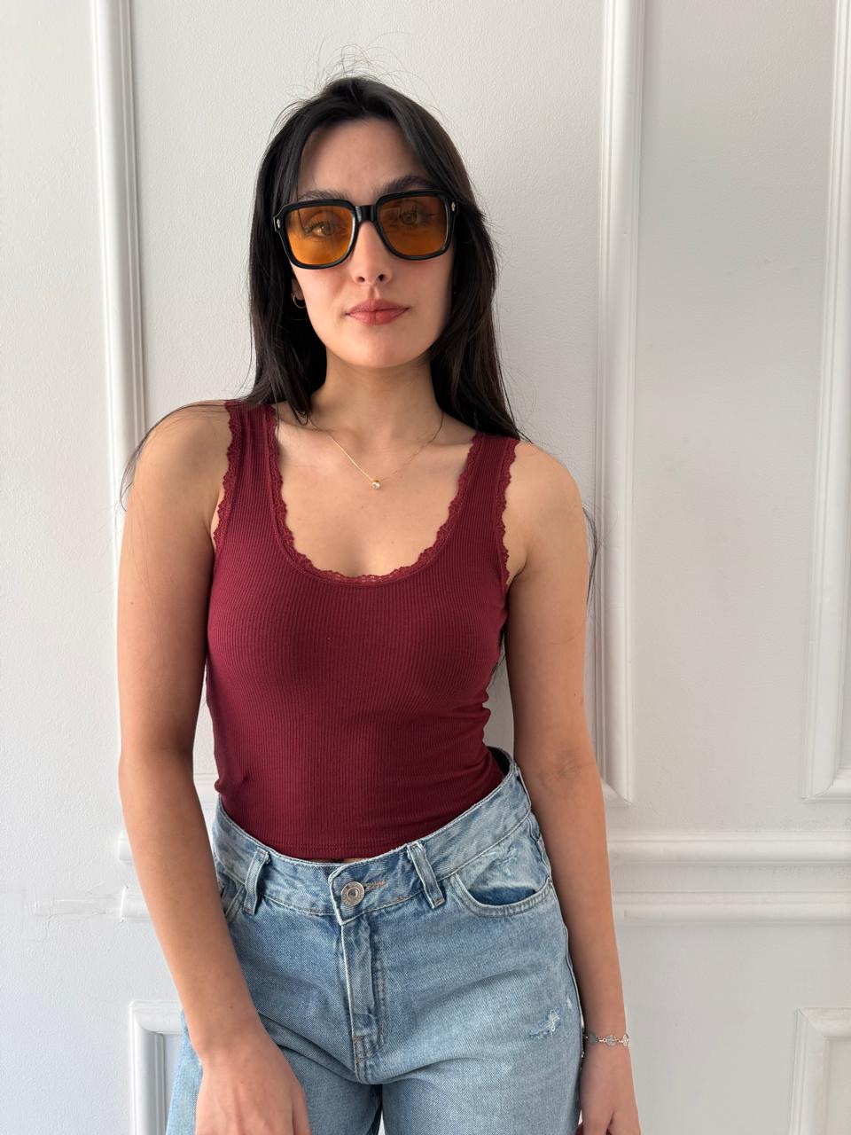 Morley con detalle de puntilla Axila a axila 31cm/Largo de hombro a cintura 42cm MEDIDAS APROXIMADAS (las medidas son tomadas con la prenda plana)